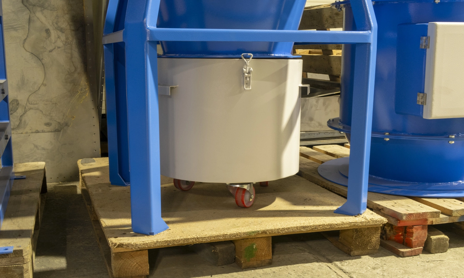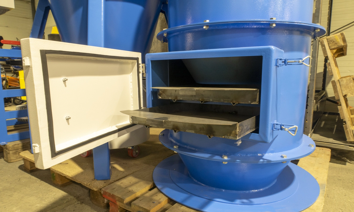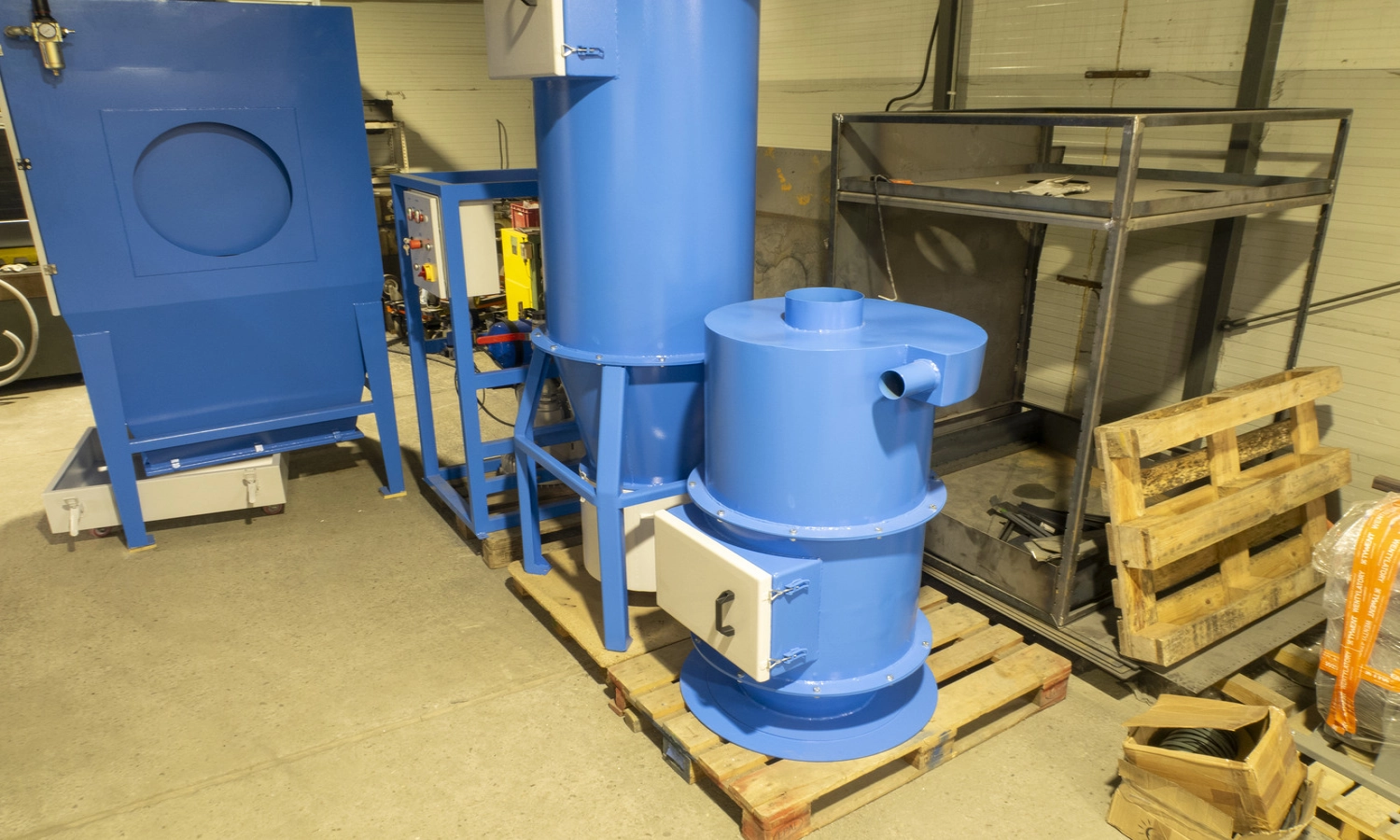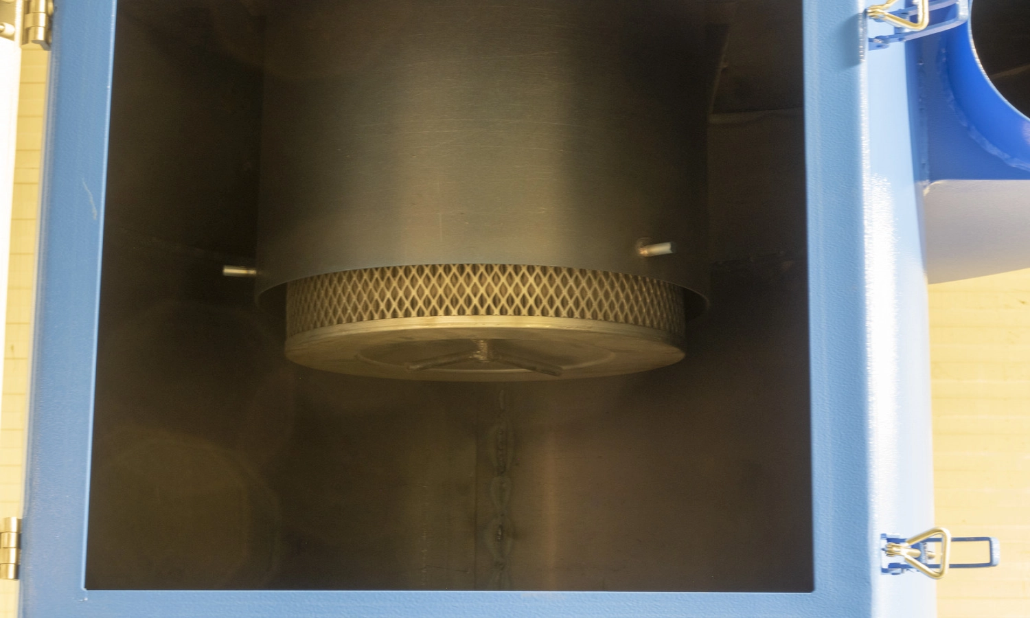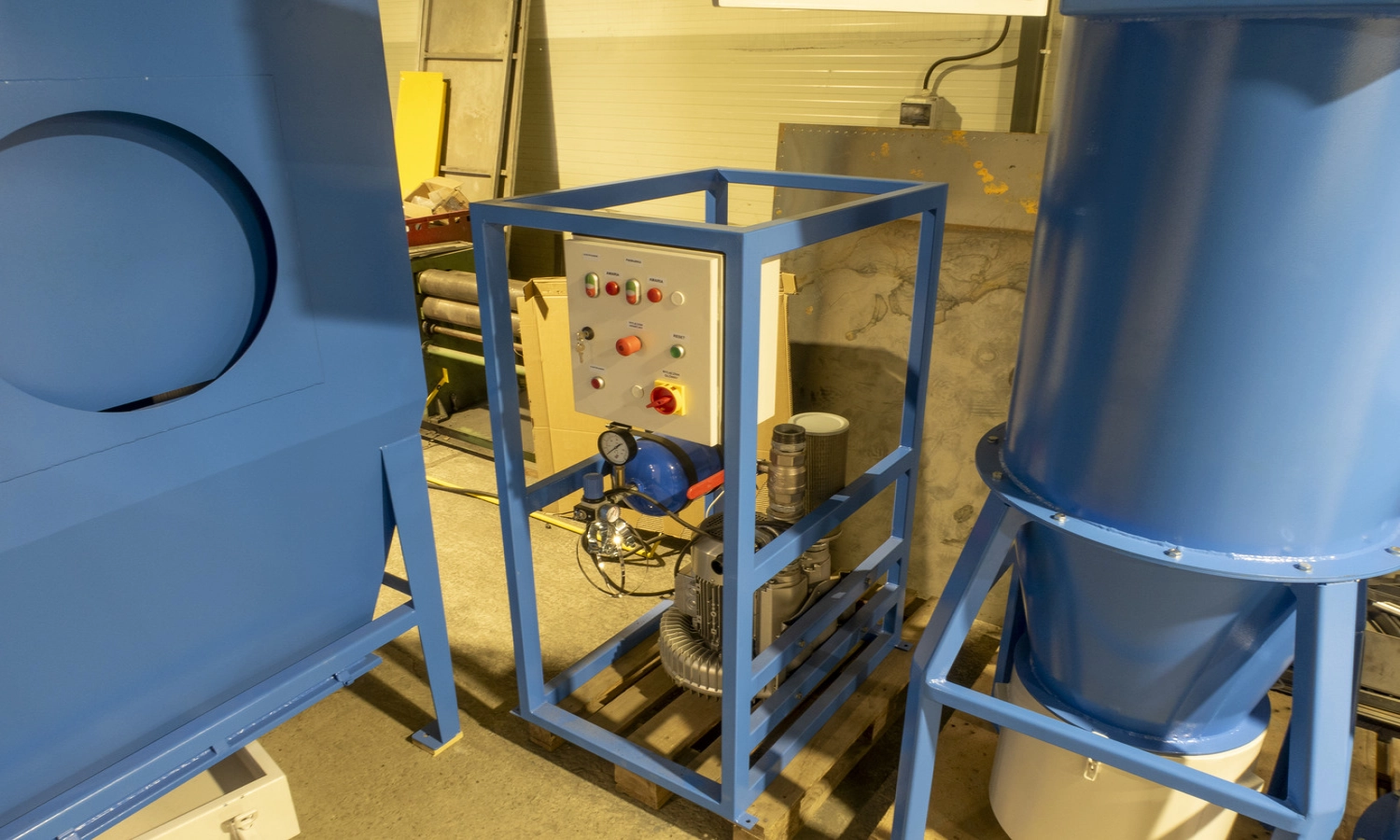 - Oddzielanie odpadów – system usuwa zanieczyszczenia, takie jak kurz, rdza, resztki powłok malarskich czy drobne ziarna ścierniwa.