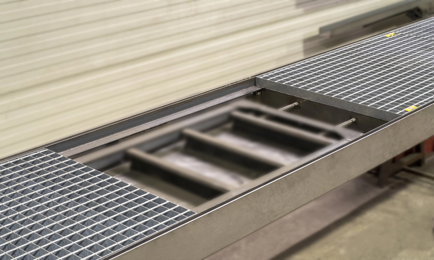 System zgarniania podłogowego to element systemu recyrkulacji ścierniwa stosowany w komorach śrutowniczych, który automatycznie zbiera zużyte ścierniwo z podłogi i transportuje je do dalszej filtracji oraz ponownego wykorzystania. Jego głównym zadaniem jest usprawnienie procesu śrutowania poprzez eliminację konieczności ręcznego usuwania ścierniwa, co zwiększa efektywność pracy i komfort operatora.